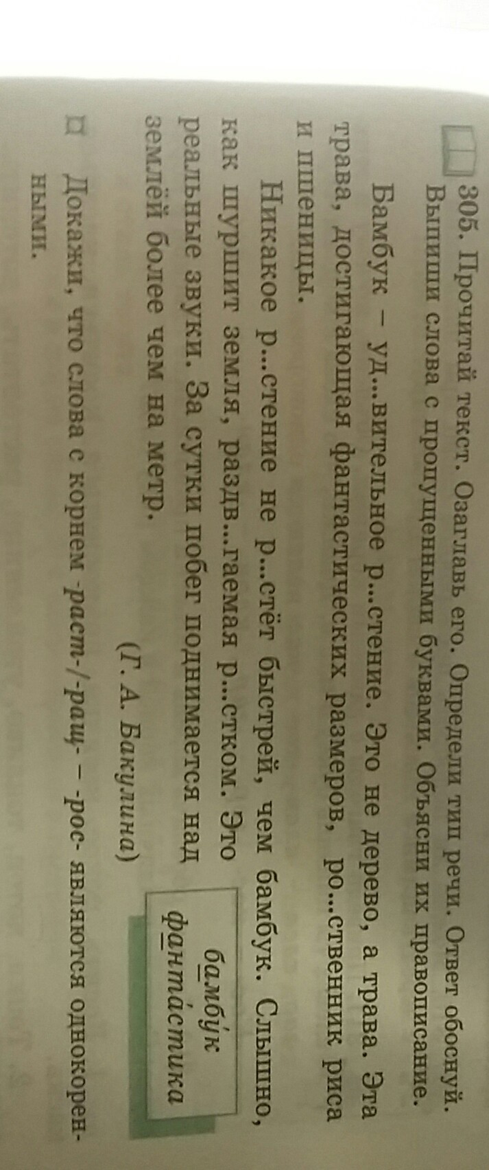 Допустим, заголовок "Бамбук".) Тип речи-повествование.