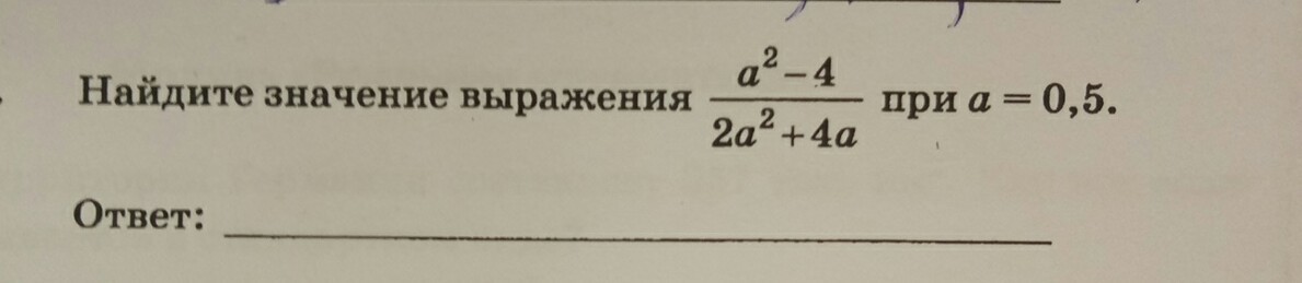 frac{a^2-4}{2a^2+4a} = frac{(a-2)(a+2)}{2a(a+2)} = frac{a-2}{2a} =  frac{a}{2a} - frac{2}{2a} = frac{1}{2} -2=-1.5
