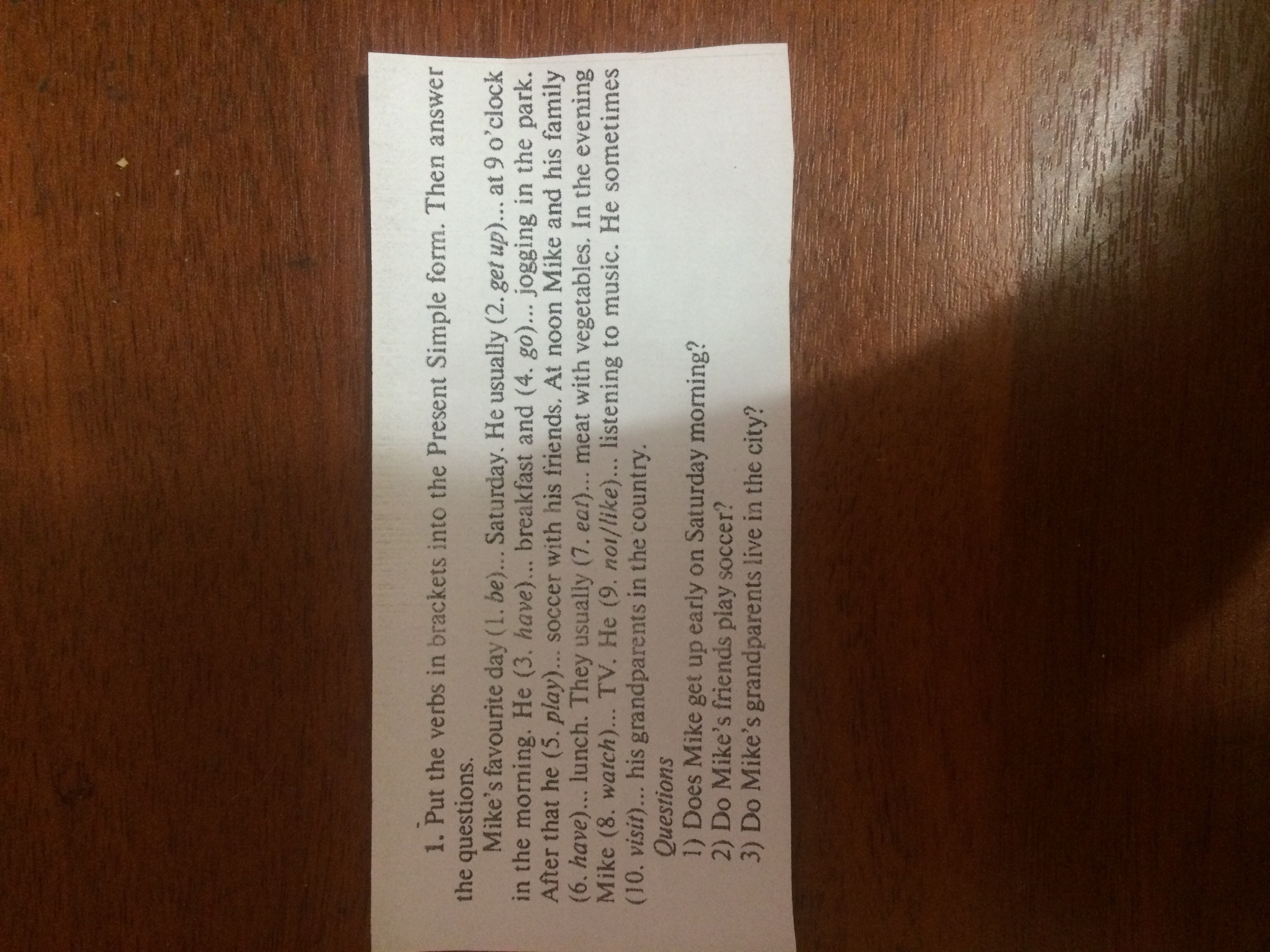Put the verbs in brackets into the Present Simple form. Then answer the questions.