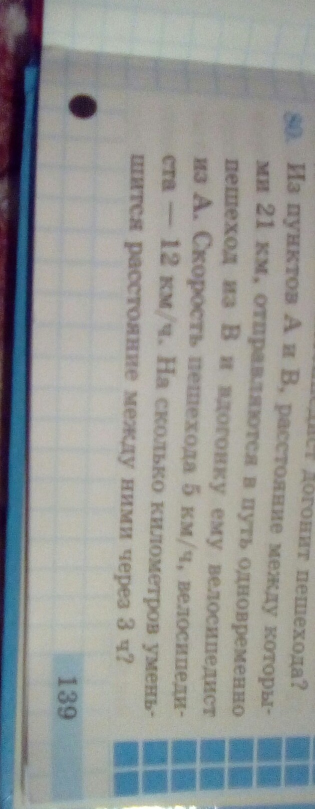 Так как в момент старта расстояние между ними было 21 км, то через 3 часа велосипедист догонит пешехода.