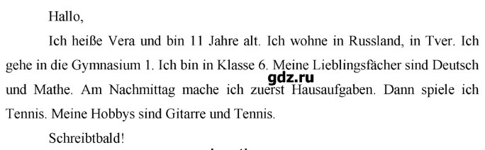 Привет, я вера и мне 11 лет. Я живу в России, в Твери. Я учусь в гимназии 1. Я в 6 классе. Мои любимые предметы это Немецкий и математика. Вечером я делаю домашние задания. Днём играю в теннис. Мои хобби играть на гитаре и теннис.