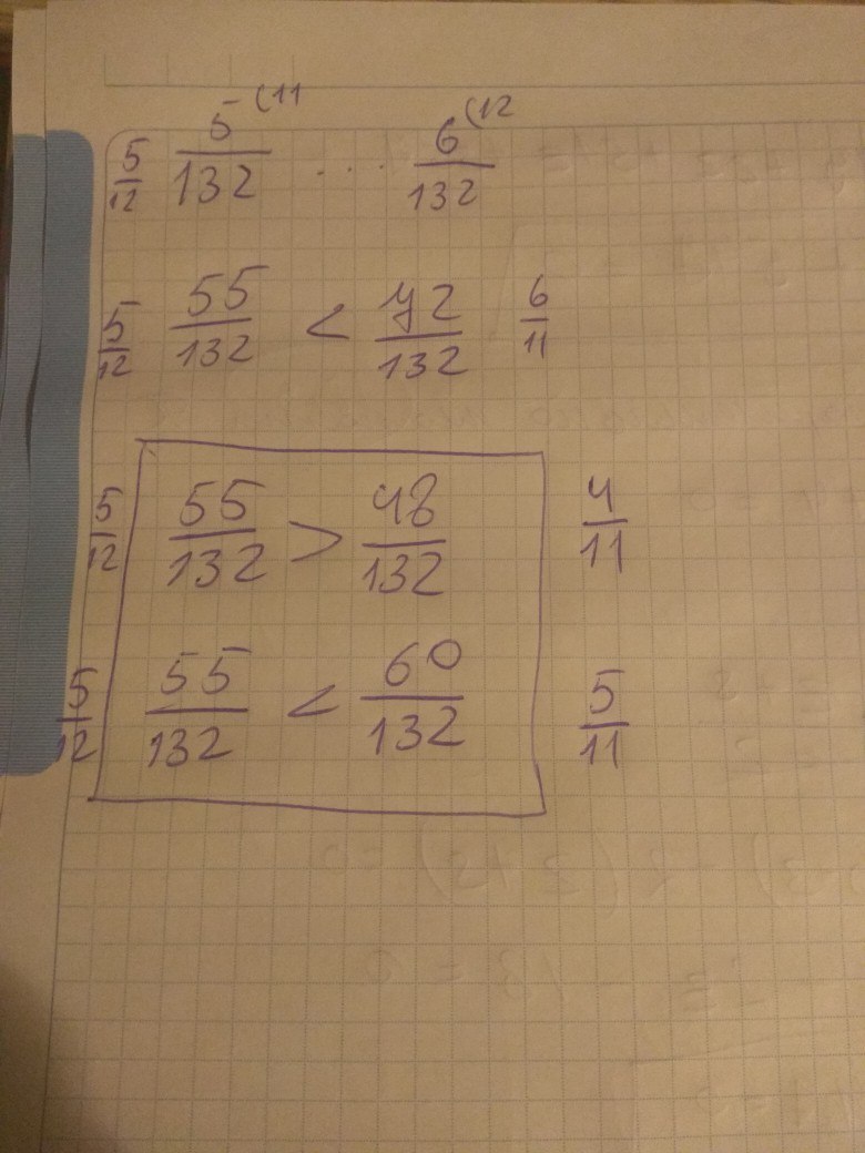 Это точка B. Достаточно привести 5/12 и заданные дроби к общему знаменателю, например 132 и сравнить.