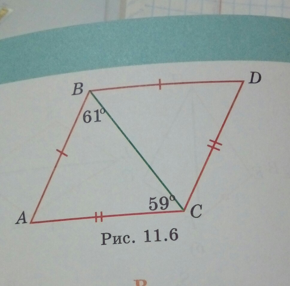 на рисунке 11.6 AB=BD и AC=CD угол ABC равен 61° угол ACB равен 59°.Найдите угол ACD