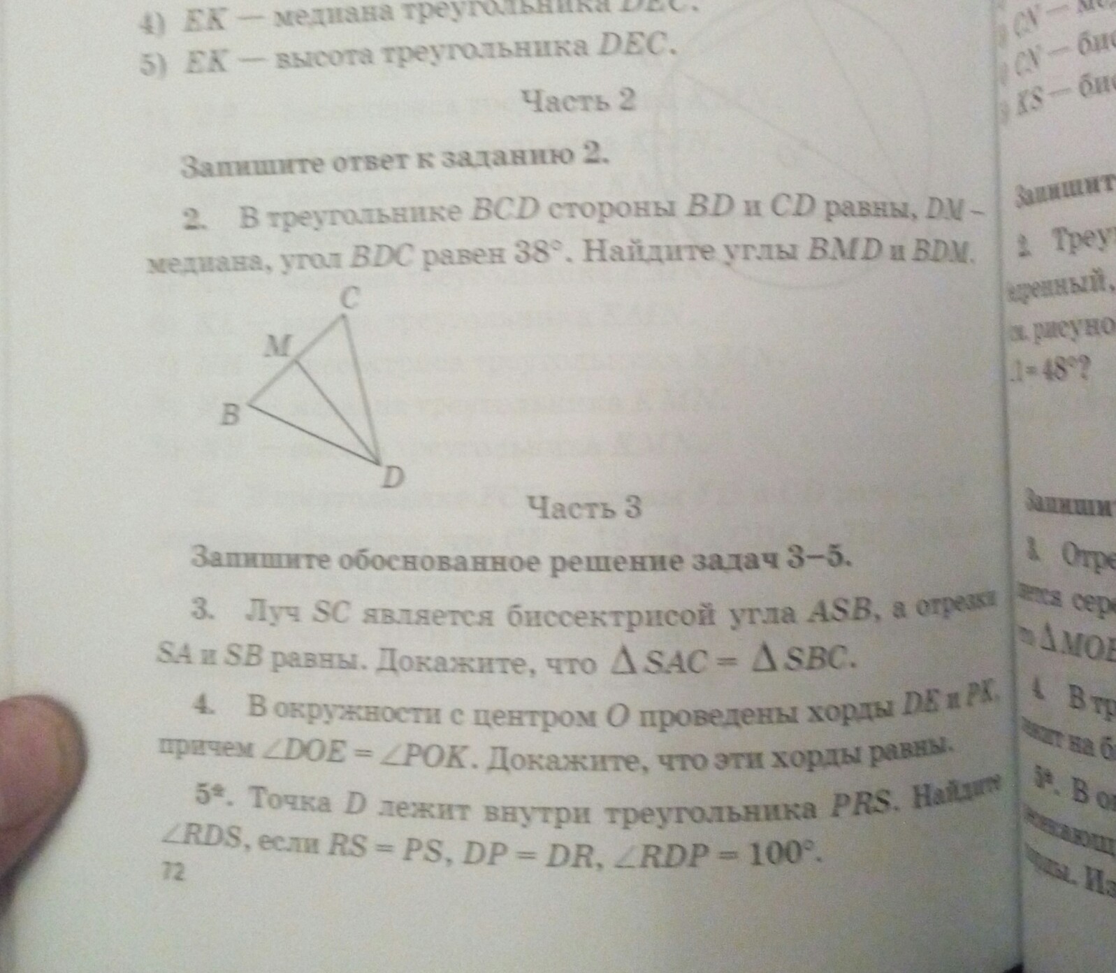 №2) медиана в равнобедренном треугольнике является биссектрисой и высотой, значит: