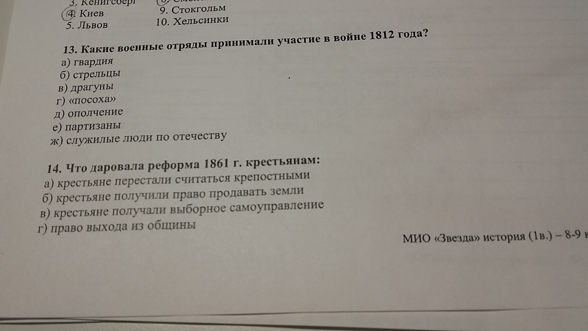 На второе задание это отмена крепостного права думаю ответ А. Партизанское движение в Отечественной войне 1812 года думаю ответ Е