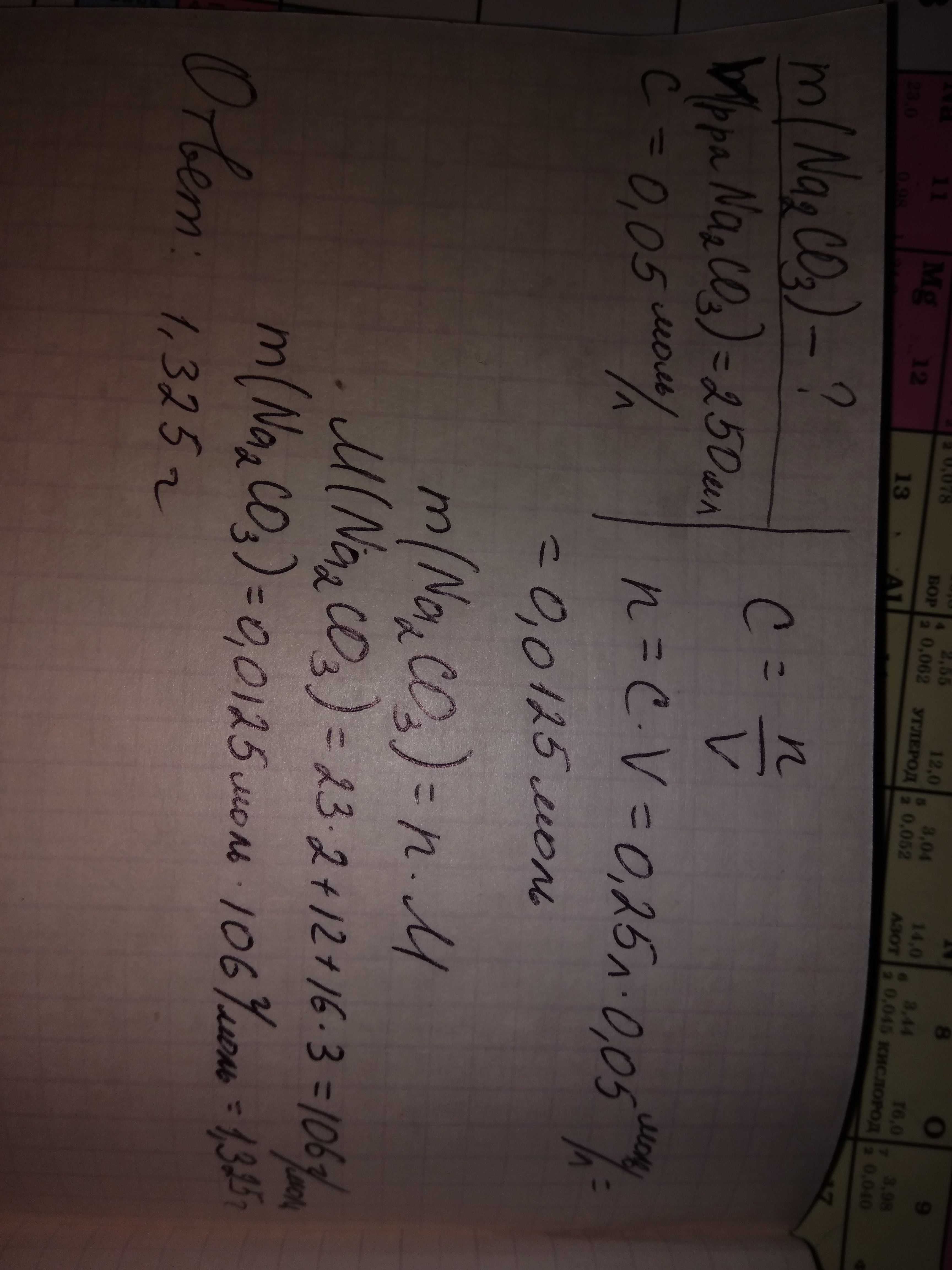 какую массу карбоната натрия надо взять для приготовления 250 мл раствора с молярной концентрацией 0,05 моль/л?