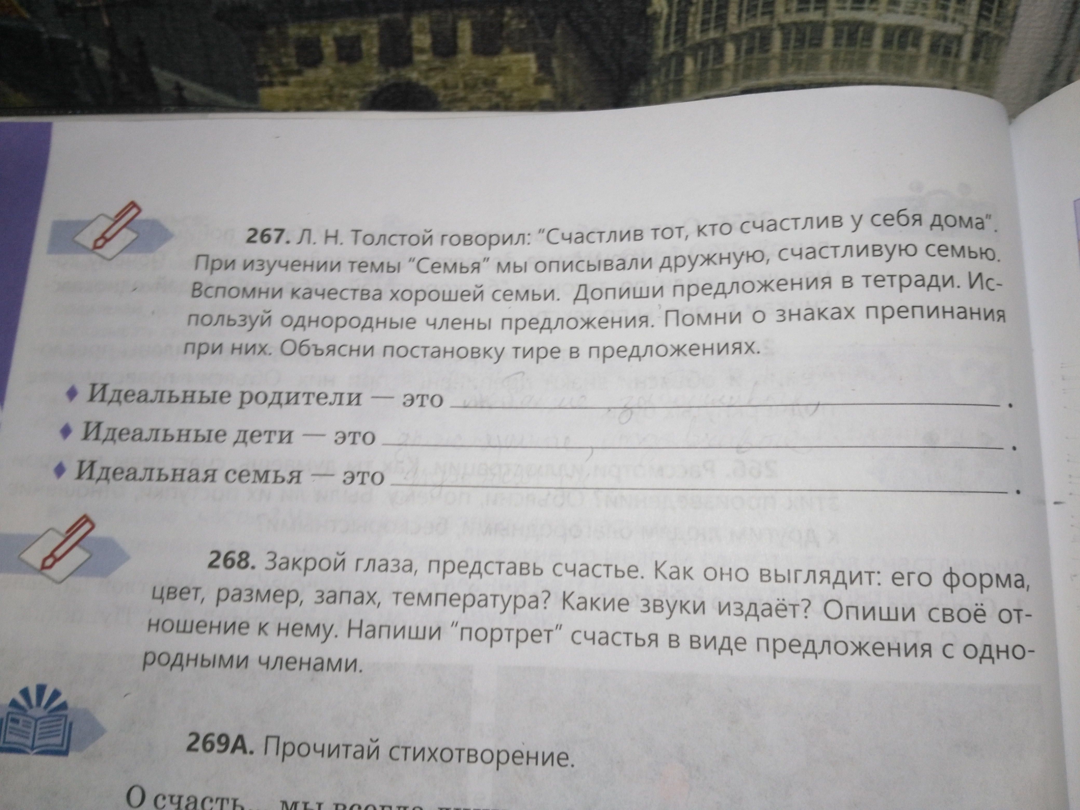 Всем привет!Помогите с русским языком, пожаааалуйста!Здесь нужно вставить прилагательные:Идеальная семья-это заботливая,и так далее!По 4 слова в каждую строку.Заранее спасибо;)