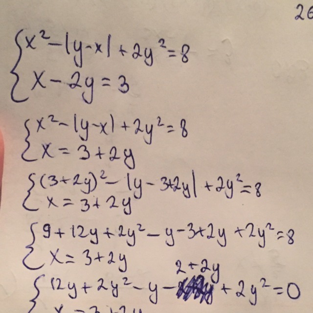 Дальше просто упрости первое уравнение. Там будет дискриминант. И корни дискриминанта( их будет два) подставь во второе уравнение. Один из них подойдёт и это и будет х. у уже найдёшь, когда х подставишь в уравнение