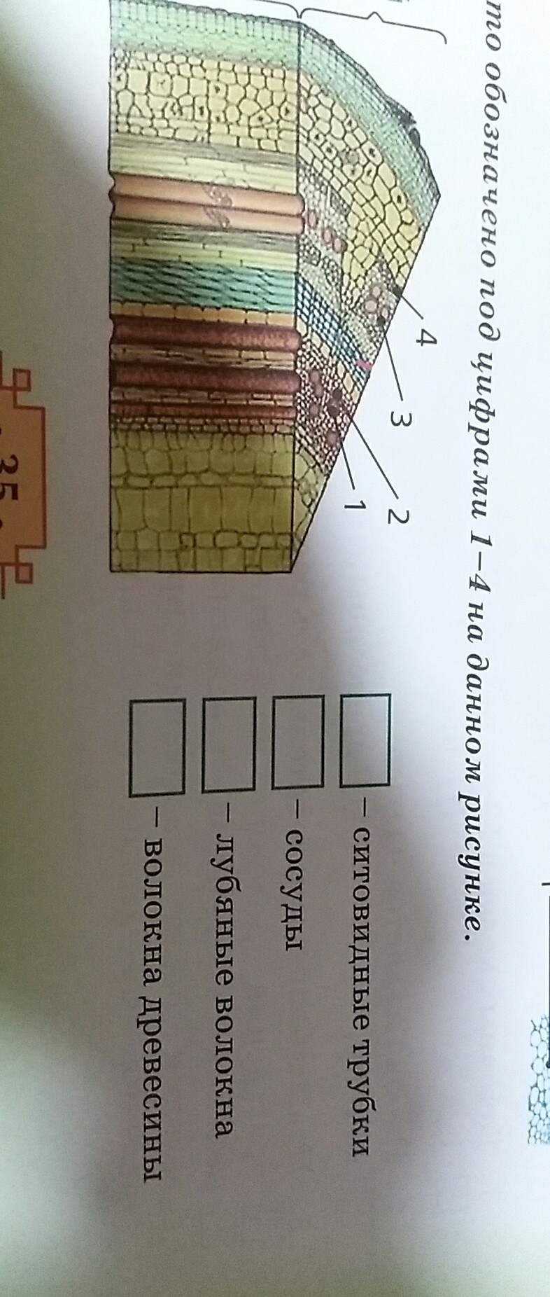 4 лубяные волокна3 сосуды2волокна древесины 1ситовидные трубки и спасибо за ответ