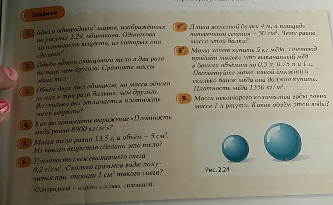 1)Плотности у этих веществ разные,т.к чем больше объем,тем меньше плотность данного вещества.
