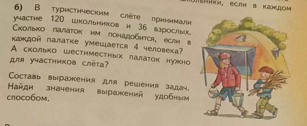 2) 156: 4 = 39 (палаток понадобится, если в каждой будет по 4 человека)