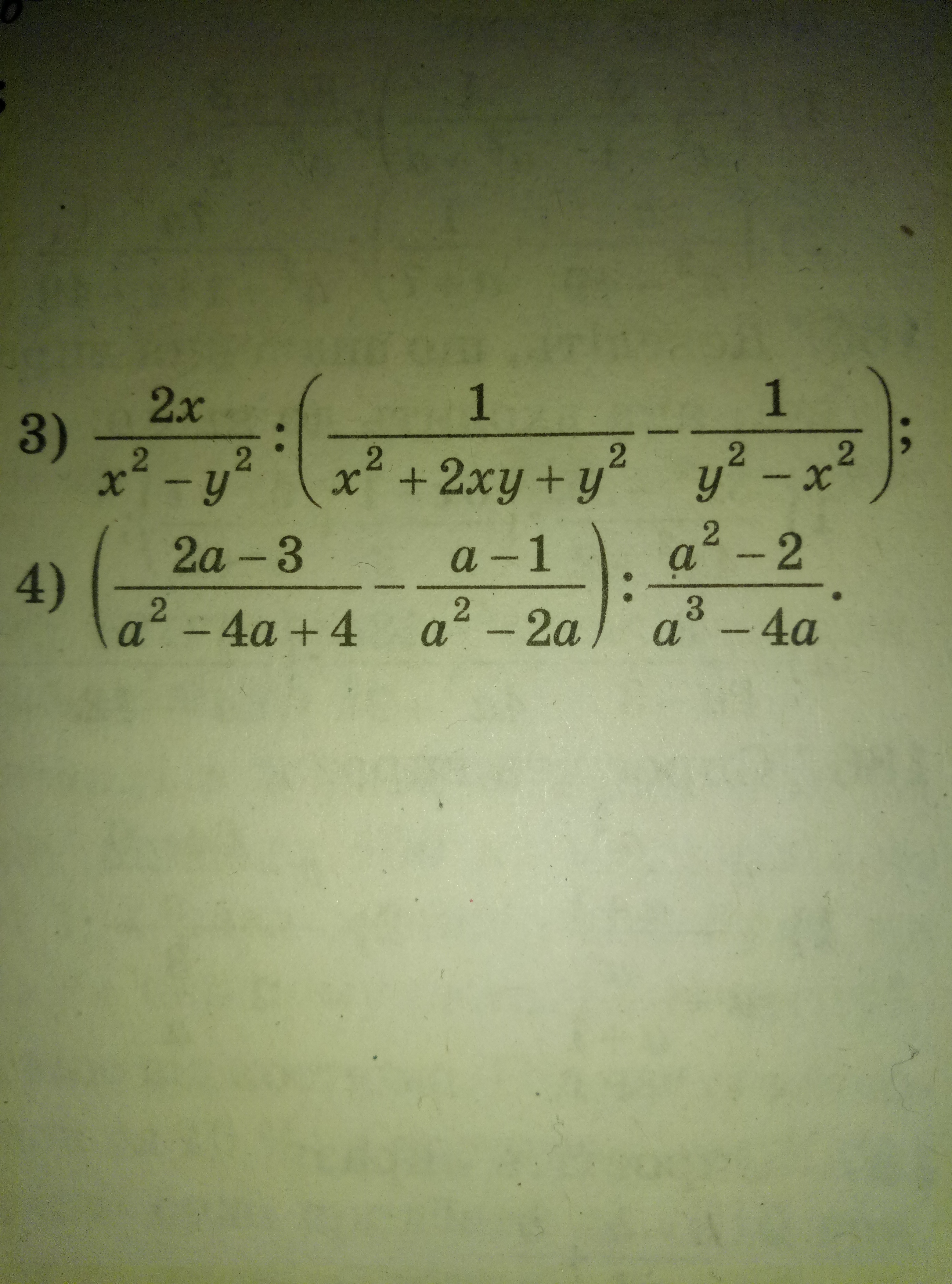 2х / (х² - у²) : ( 1/(х²+2ху +у²) + 1/(у² - х²) ) =