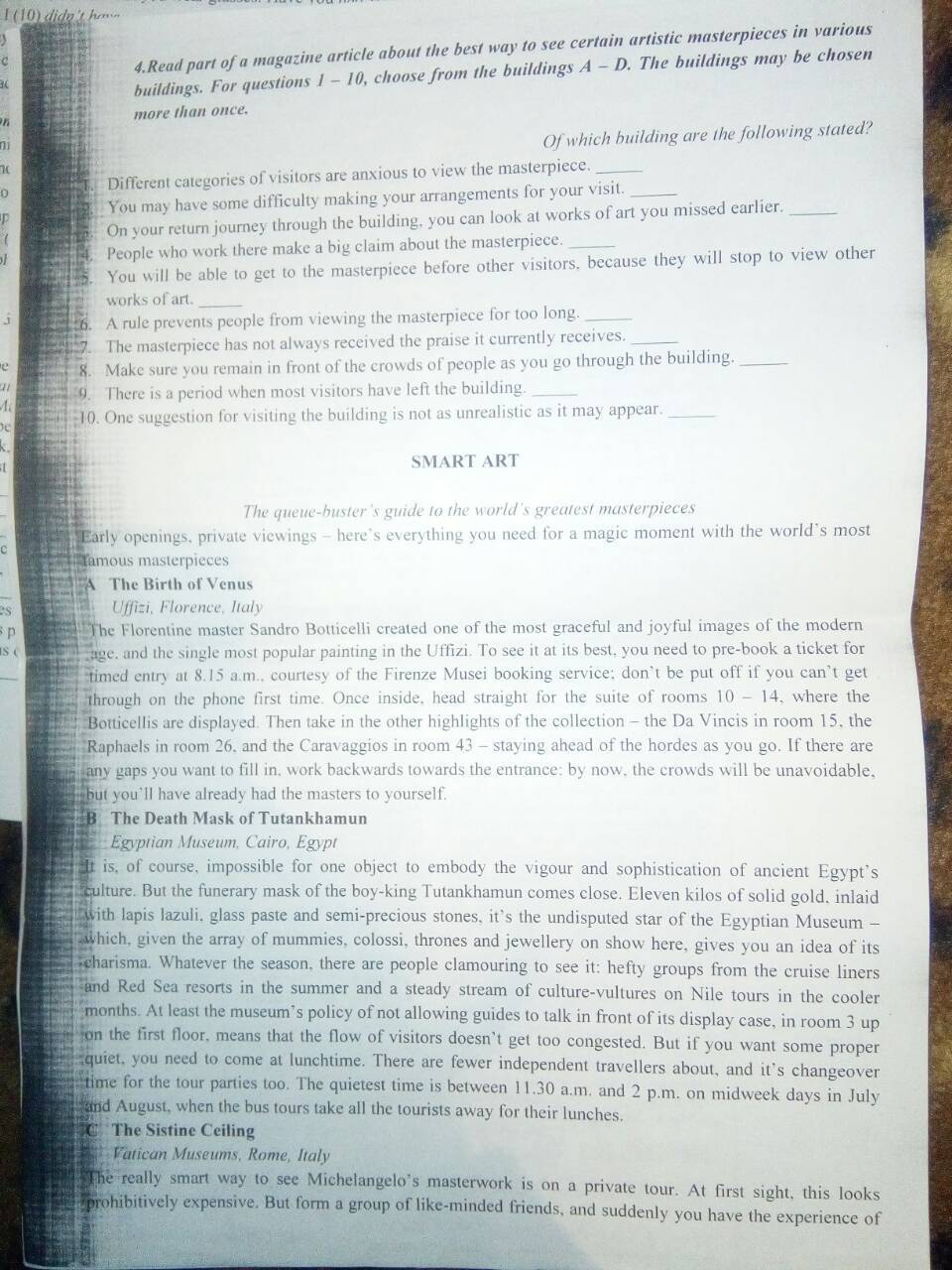1-10, choose from the buildings (A-D). The buildings may be chosen