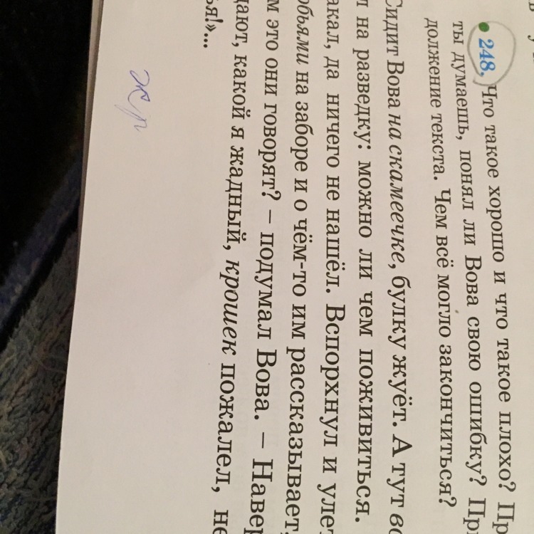 Тут стало вове стыдно перед птицой. Зима всё-таки надо же питаются чем то . Тут Вова взял и накрошил крошек для птицы,подлетела она и обрадовалась . Вове понравилось делать добрые дела теперь он каждый день кормит птиц. (Я попыталась ))