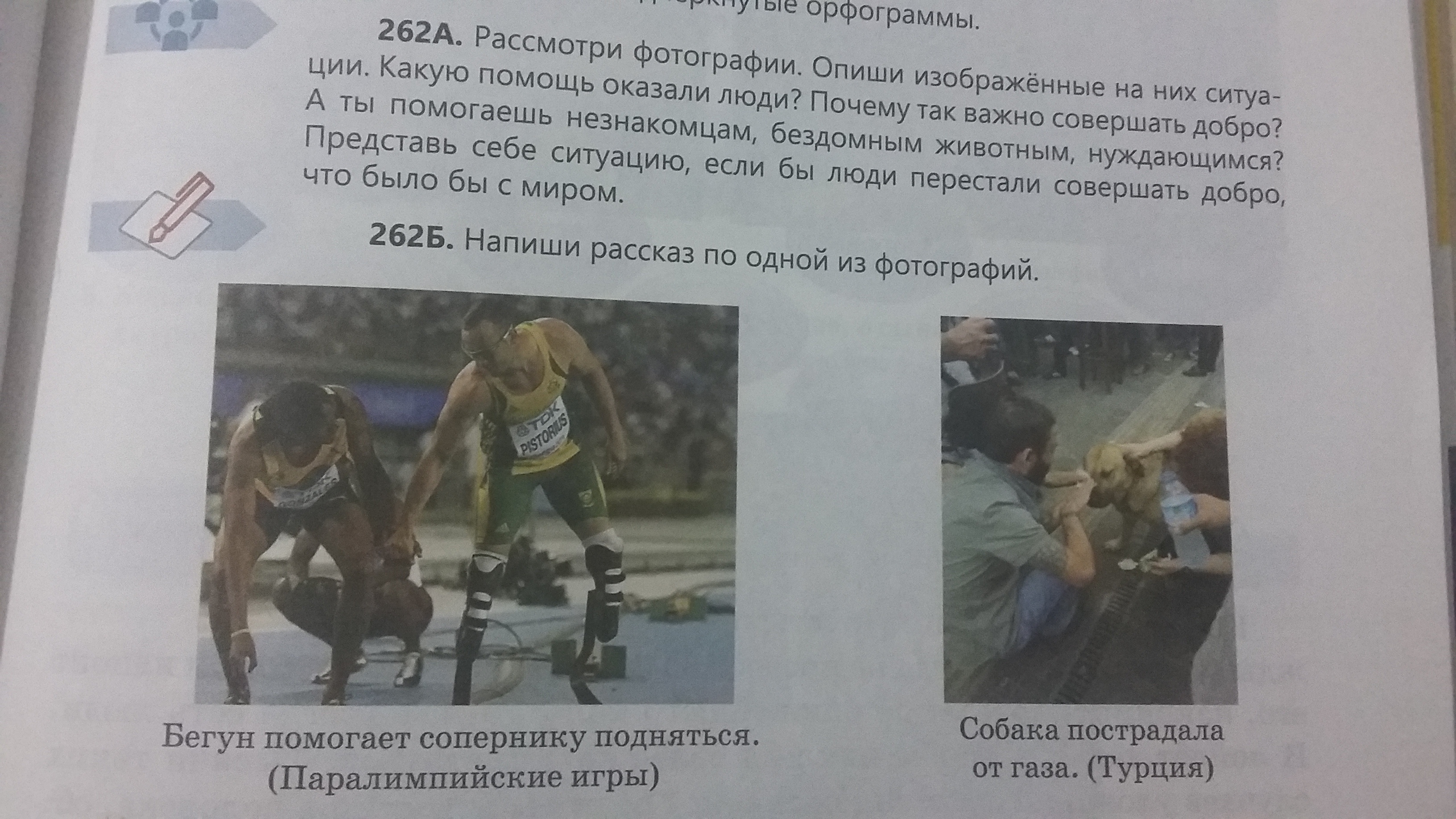 На 1 картинке изображены Паралимпийские игры , на ней один бегун помогает своему сопернику , потому , что тот упал .На 2 картинке изображено несколько людей ,которые помогали бездомной собаке , потому что она пострадала от газа.Очень важно совершать добро.Без добра наш мир погрузиться в злость ,зависть , постоянные войны .Каждый из нас должен оказывать добро своим друзьям , родным , знакомым , даже бездомым животным на улице .