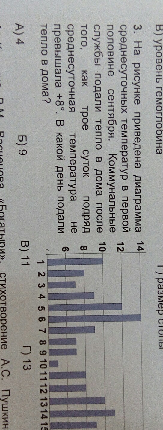 Ответ: В) 11 (т.к. 8-ого, 9-ого и 10-ого сентября среднесуточная температура не превышала +8°)