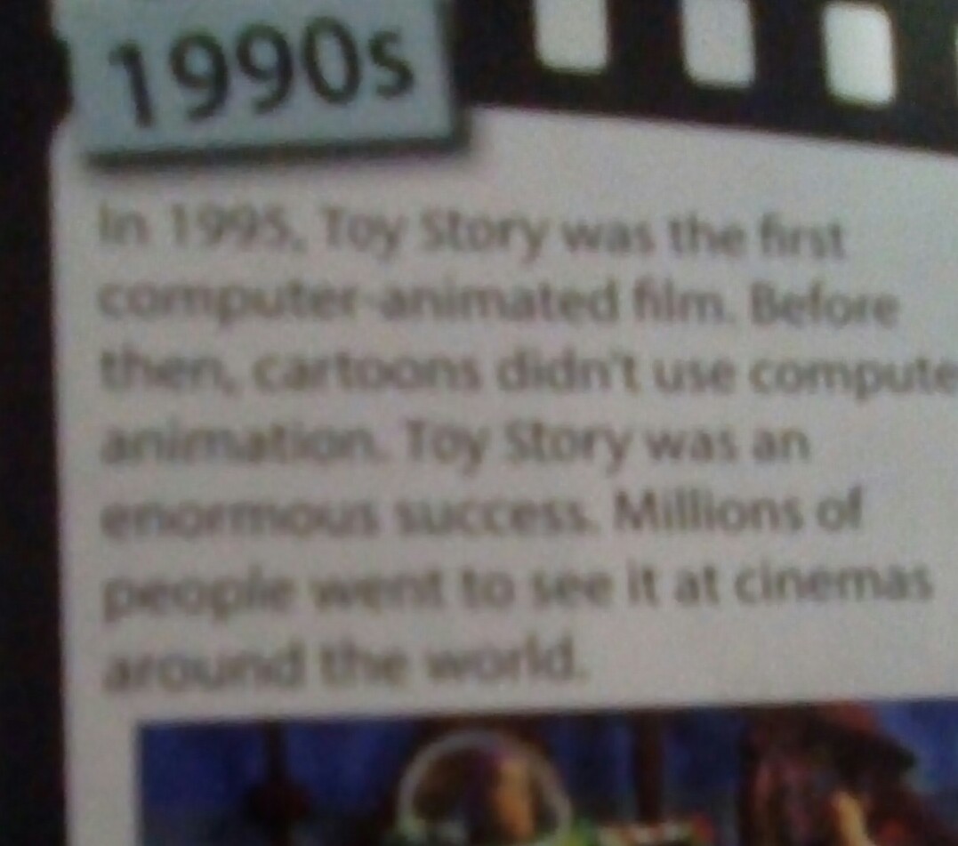 В 1995 году вышел первый мультфильм, использующий компьютерную анимацию — История Игрушек. До этого мультфильмы никогда не использовали компьютерную анимацию. История Игрушек имела невероятный успех. Миллионы людей по всему миру посмотрели этот мультфильм в кинотеатрах.