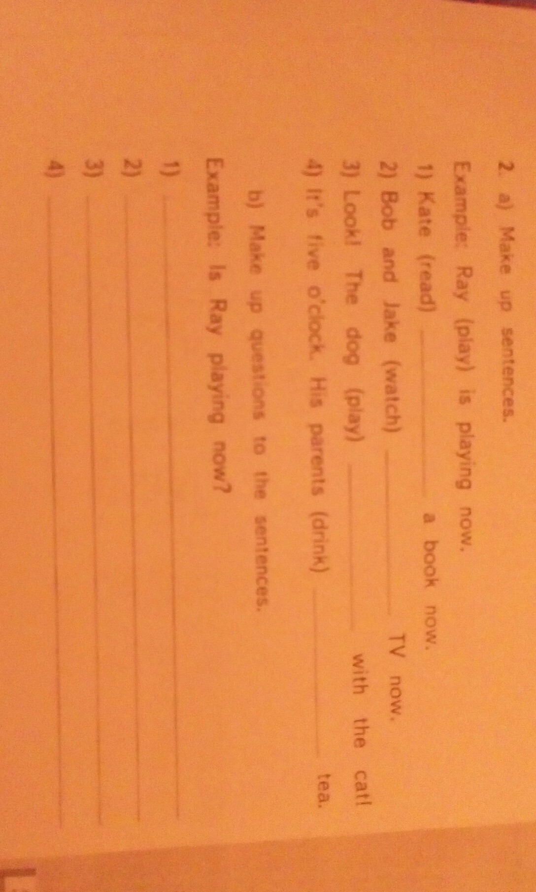 1)read 2)watching 3)playing 4)drinking
