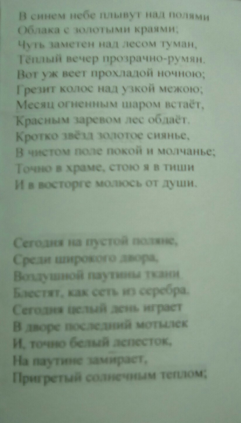 эпитеты: синем небе, золотыми краями, теплый вечер, прохладою ночною, огненным шаром, красным заревом, золотое сиянье, чистом поле, воздушной паутины, солнечное тепло