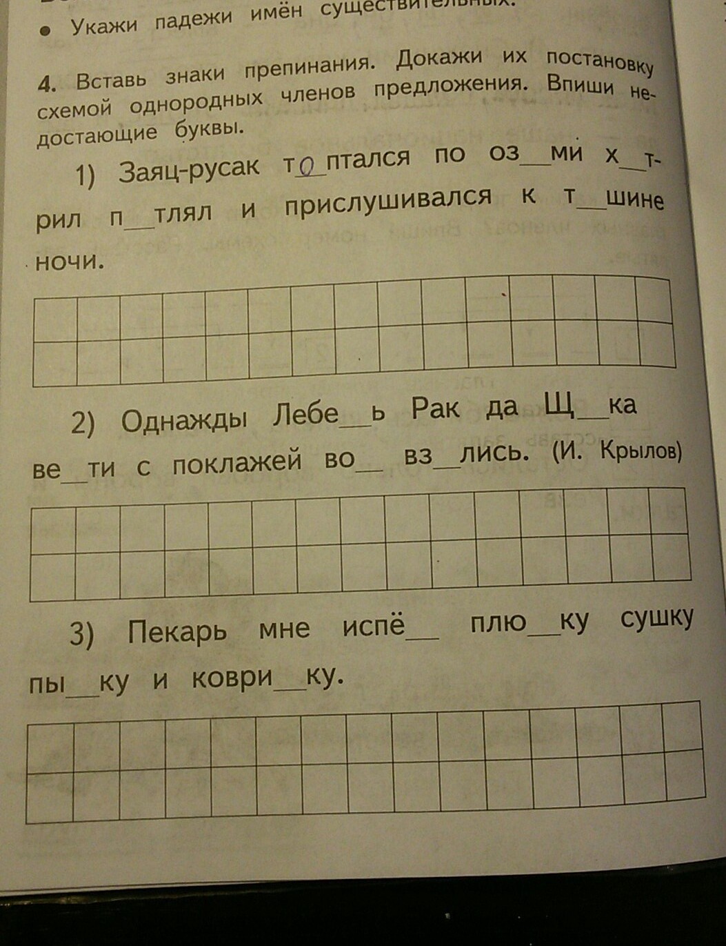 1) Заяц-русак топтался по озими хитрил, петлял и прислушивался к тишине ночи. 2) Однажды Лебедь, рак да щука вести с поклажей воз взялись. 3) Пекарь мне испёк плюшку, сушку,пышку и коврижку.