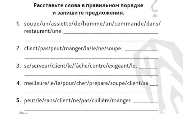 1. Un homme commande une assiette de soupe dans un restaurant