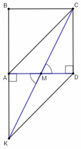 ПОМОГИТЕ ОВОЩУ! Точка M-середина стороны AD квадрата ABCD. Луч CM пересекает прямую AB в точке K. Докажите, что четырёхугольник ACDK является параллелограммом.