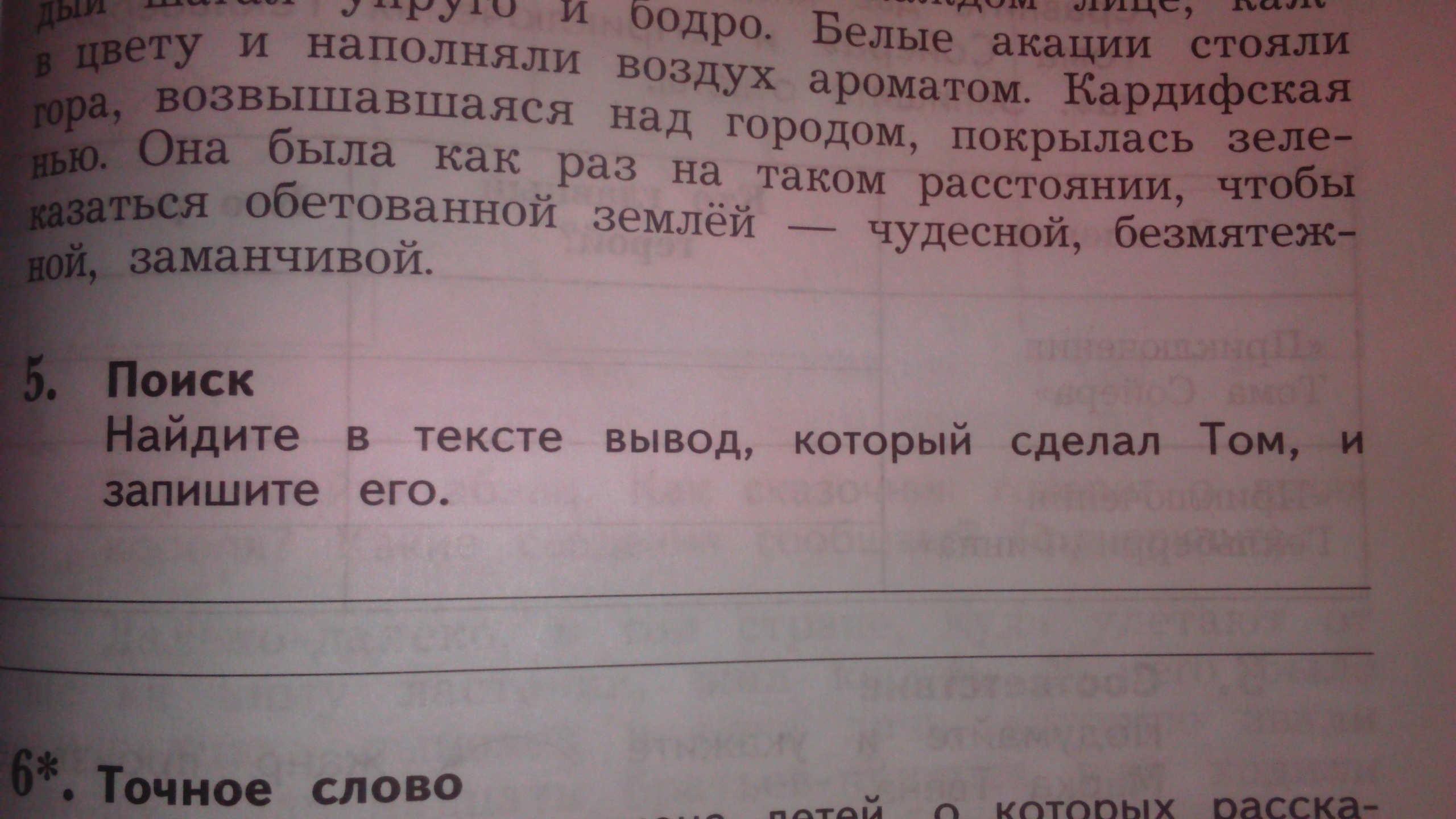 Там рассказ: "Приключения Тома Соера" главы 1-2 . Тебе что,весь рассказ переписать?