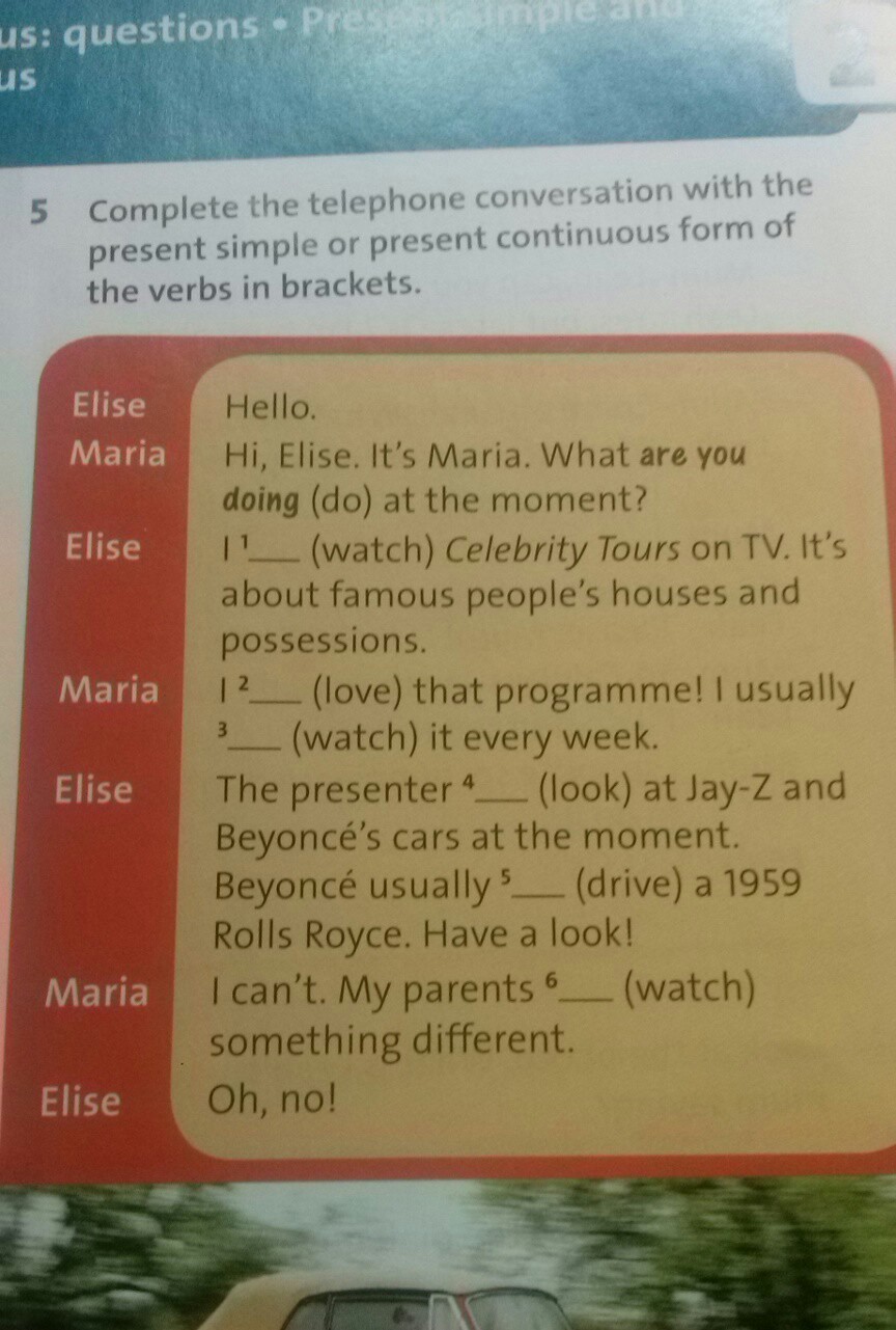 1) I am watching 2) I love 3) watch 4) is looking 5) drive 6) are watching