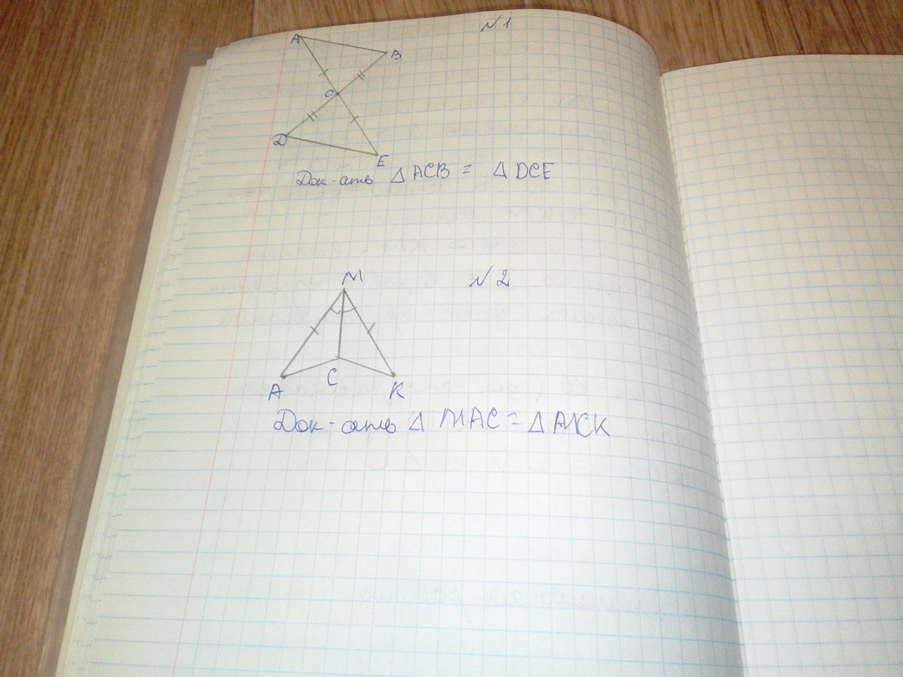 2) угол АСВ=ДСЕ как вертикальные