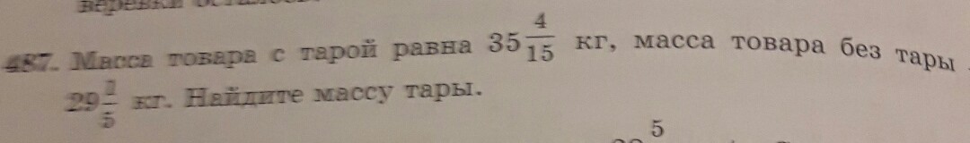 35 4/15-29 1/5=35 4/15-29 3/15=6 1/15-масса тары