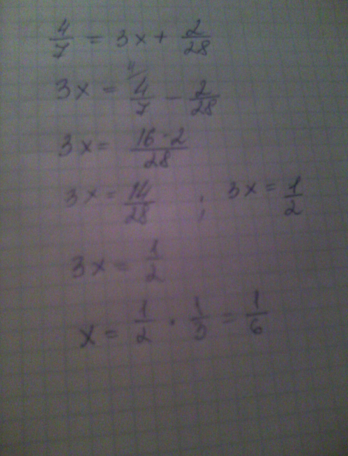 3х=14/28 3х=1/2 х= 1/6