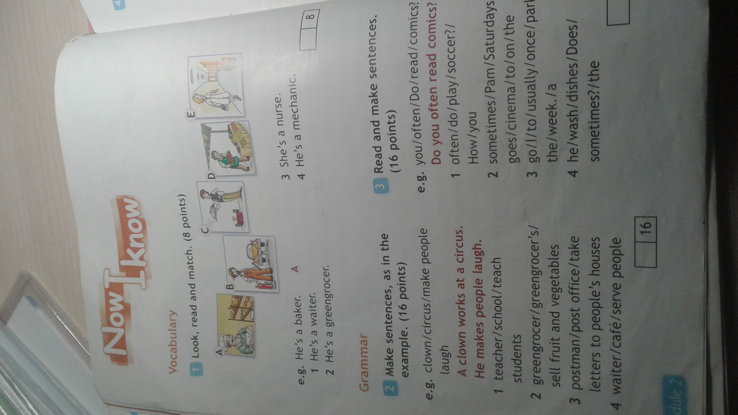 2 A greengrocer works at the greengrocer's. He sells fruit and vegetables.