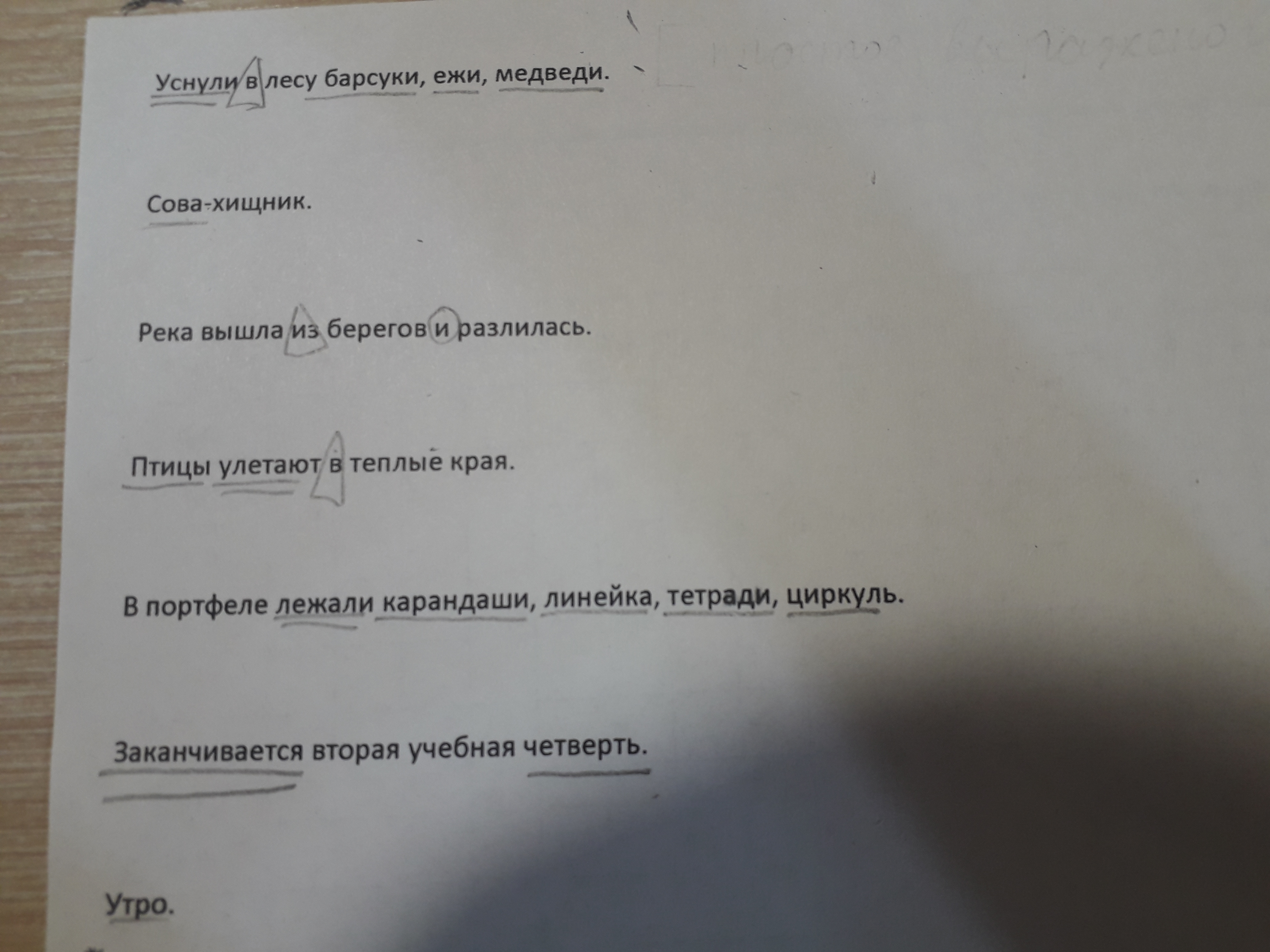 5. повеств., невосклицат., простое, полное, двусост., распрост., осложн. однород. подлеж.)