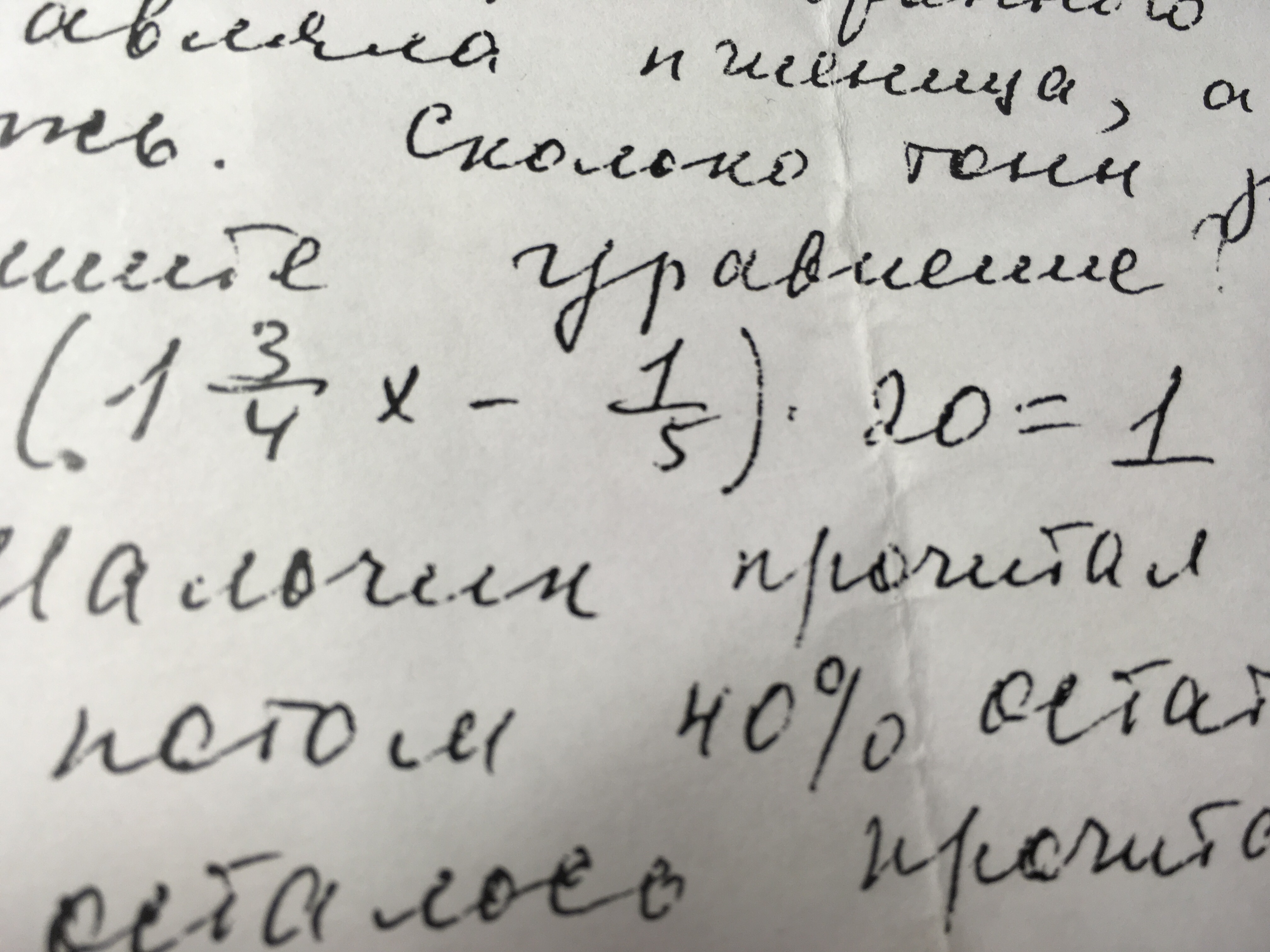 1 frac{3}{4}= frac{7}{4}; \ ( frac{7}{4}x- frac{1}{5})20=1 \ 35x-4=1 \ 35x=1+4 \ 35x=5 \ x= frac{1}{7}