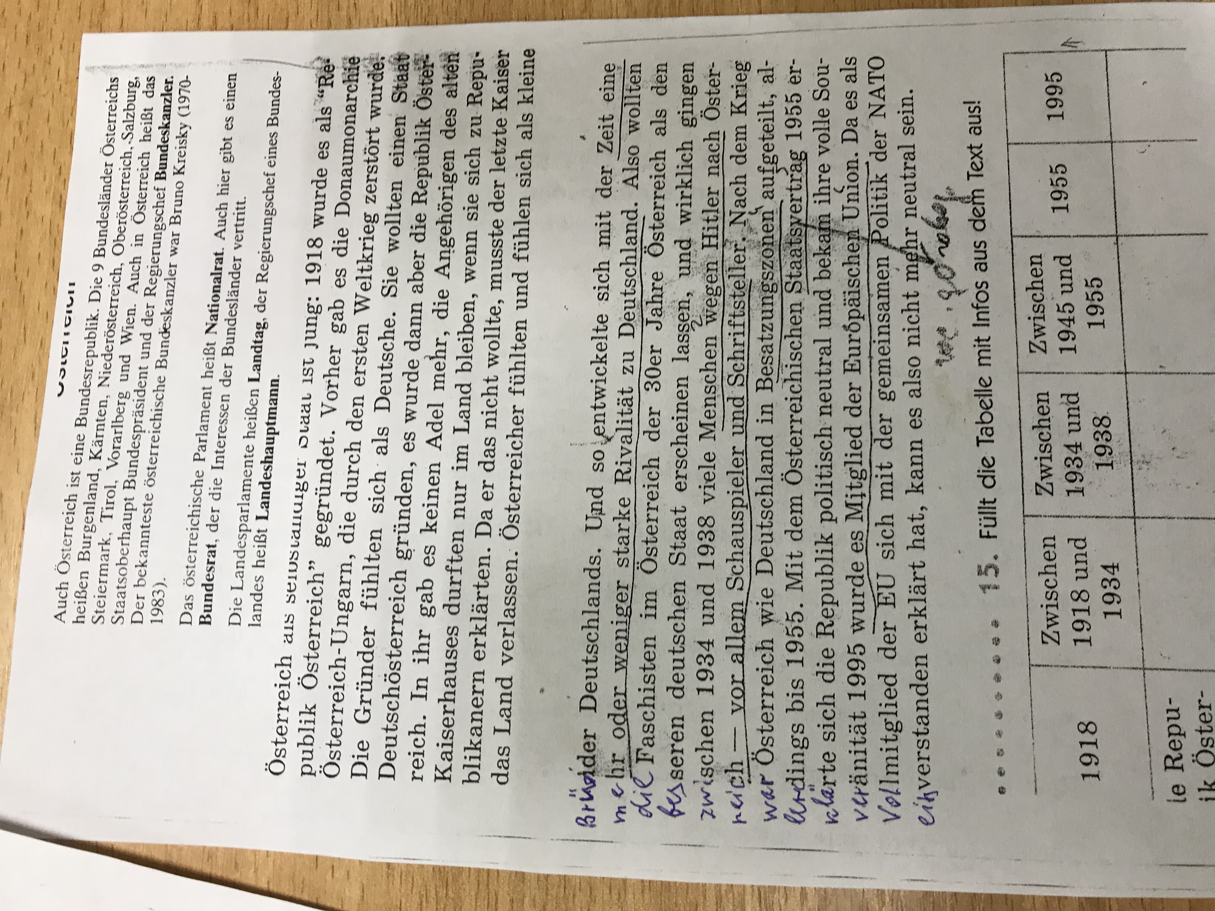 Австрия, как самостоятельная страна, довольно молодая: 1918 она была основана как "Австрийская республика. До этого существовала Австро-Венгерская империя, которая была разрушена во время Первой мировой войны. Основатели чувствовали (утверждали) себя немцами. Они хотели основать государство Немецкая Австрия, но потом она-таки осталась Австрийской республикой. У нее не было больше орла, члены старой имперской династии должны были оставаться исключительно в стране, если они причисляли себя к республиканцам. Поскольку он этого не хотел, последний Кайзер (император) должен был покинуть страну. Австрийцы чувствовали и чувствуют меньшими братьями Германии