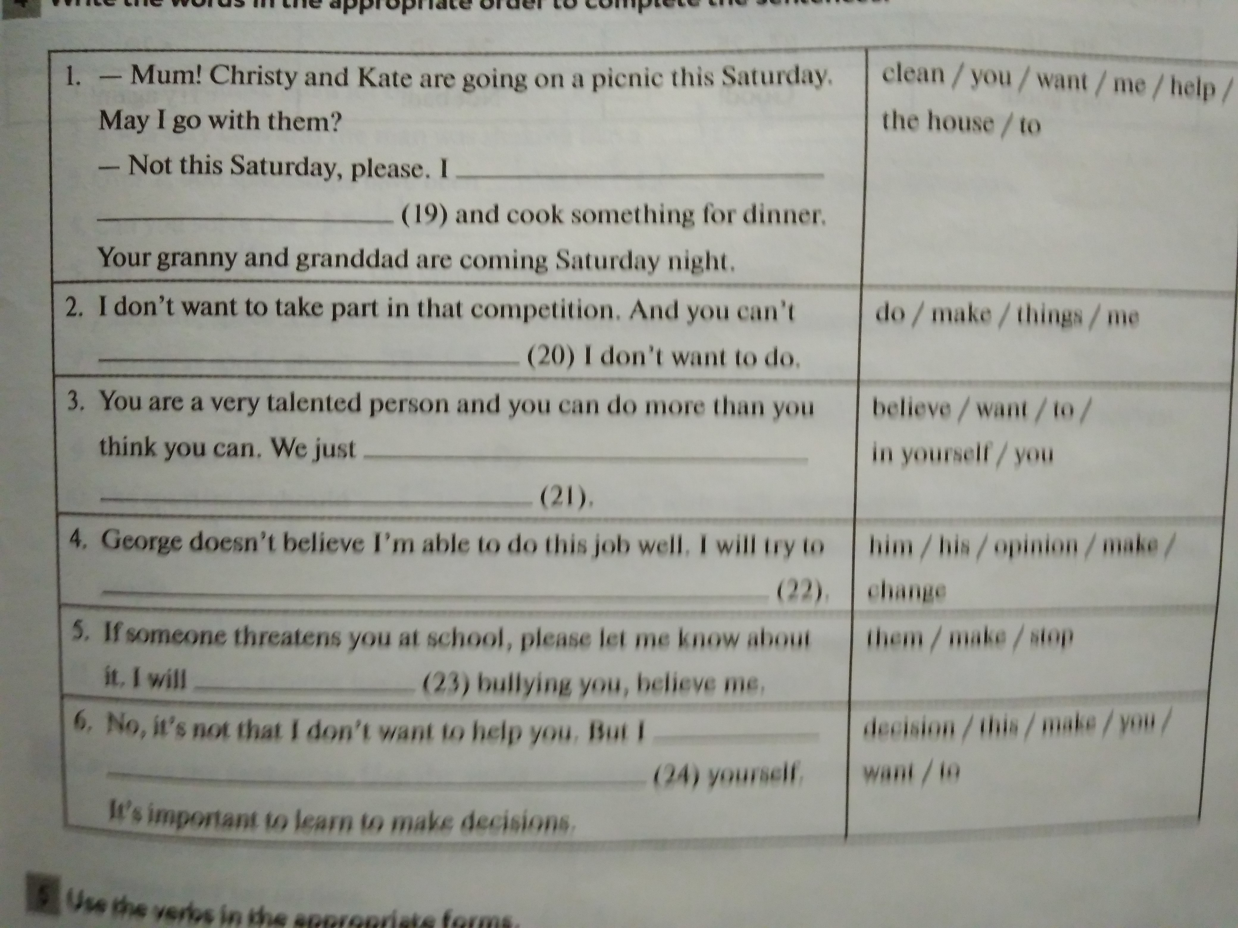 Даю 100 баллов. Только помогите пожалуйста решить. Срочно. Write the words in the appropriate order to complete the sentences.