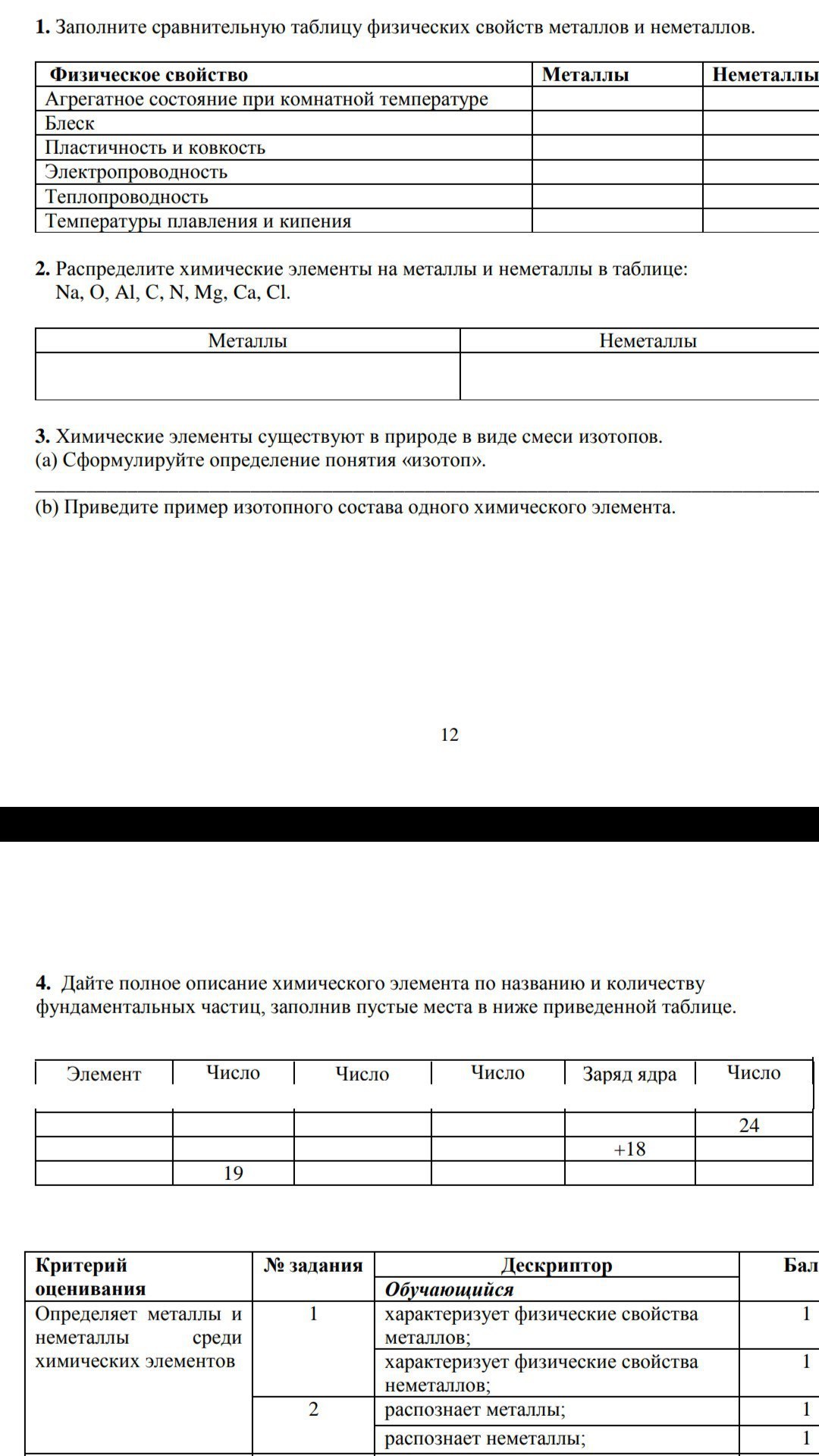 Дайте полное описание химического элемента по названию и количеству фундаментальных частиц, заполнив пустые места.