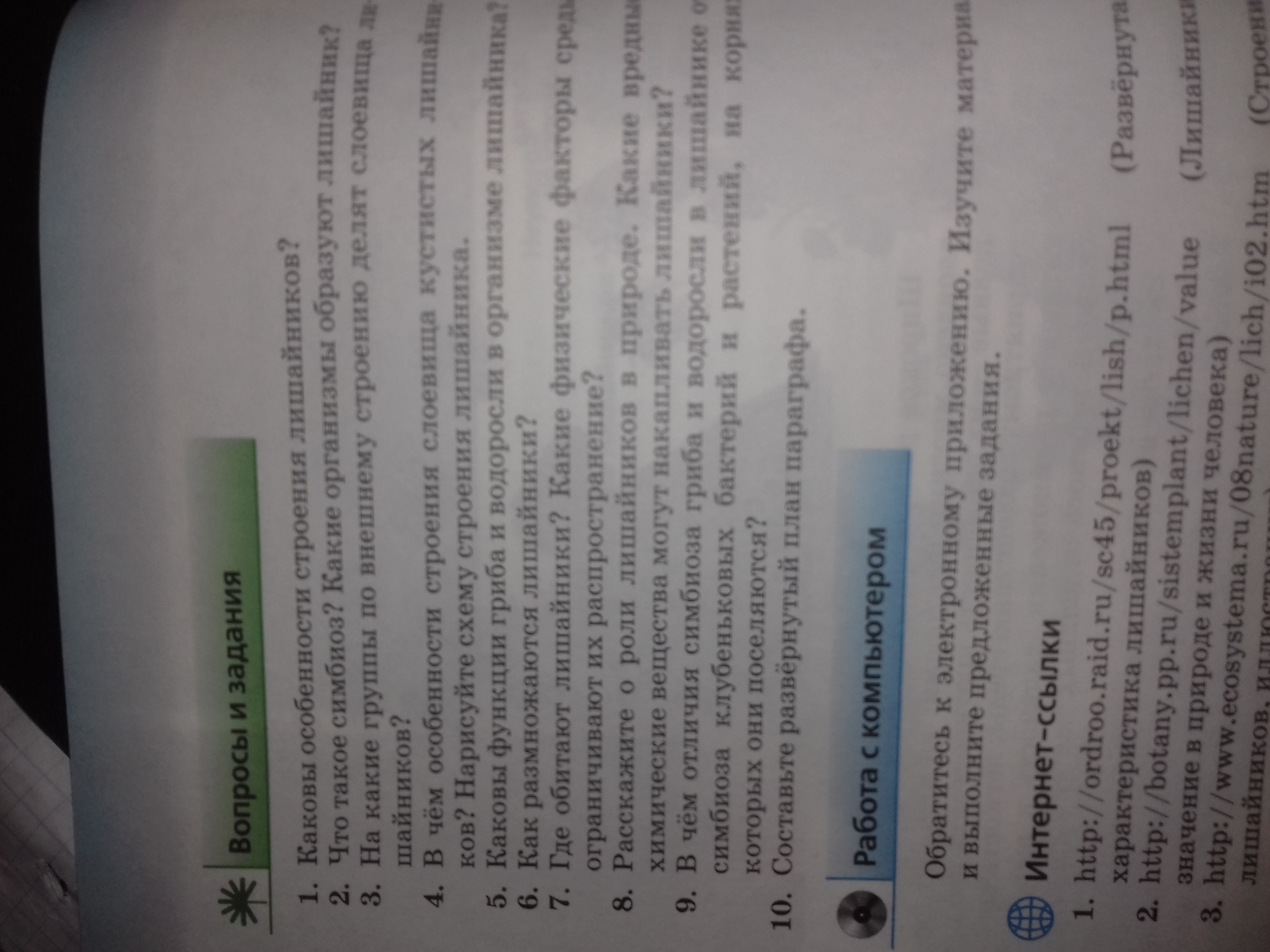 1 Лишайники представляют собой симбиотические организмы, состоящие из гриба и водоросли.