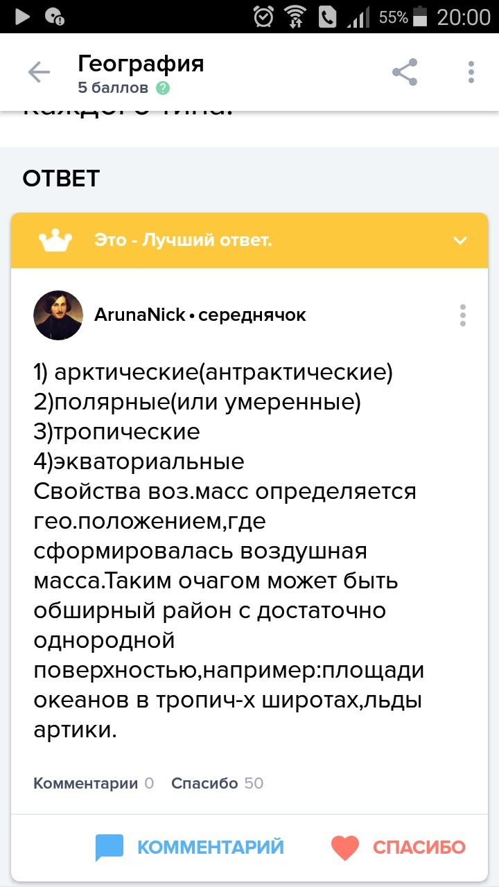 Какие типы воздушных масс имеются на нашей планете и чем обусловлено их образование?Назовите свойства воздушных масс каждого типа.
