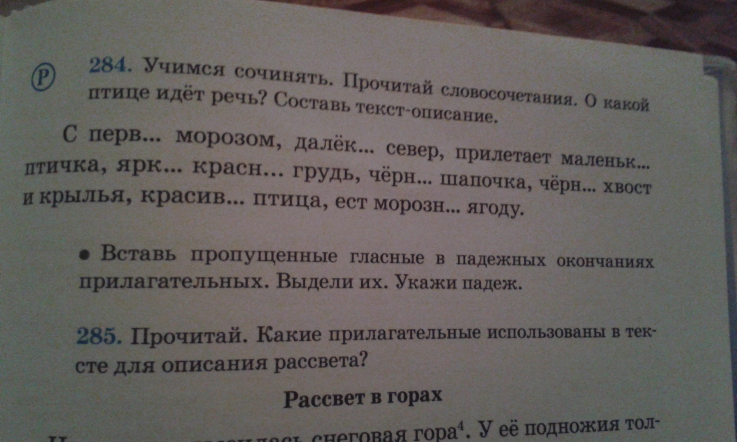 Учимся сочинять. Прочитай словочетания. О какой птице идет речь? Составь текст-описание.