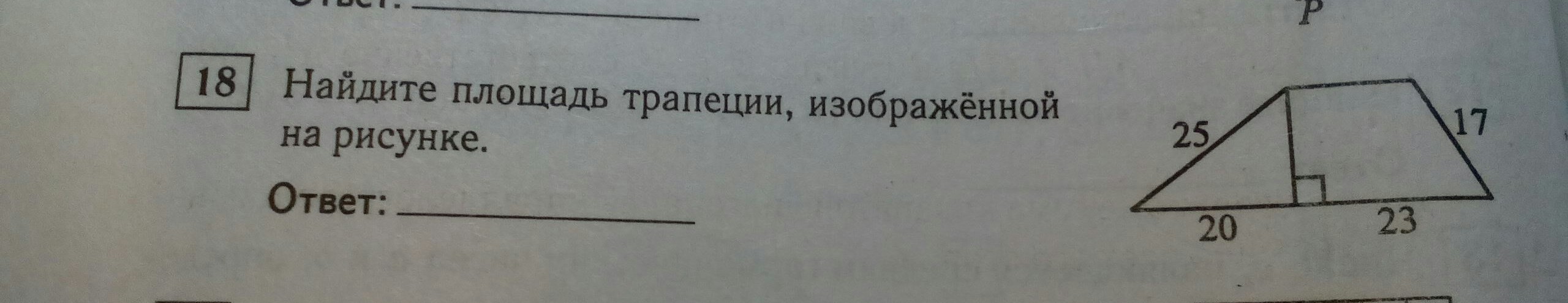 Все правильно, кроме последнего действия. Большее основание не 23, а 43. S=1/2*15(15+43)=435. Исправьте, пожалуйста.