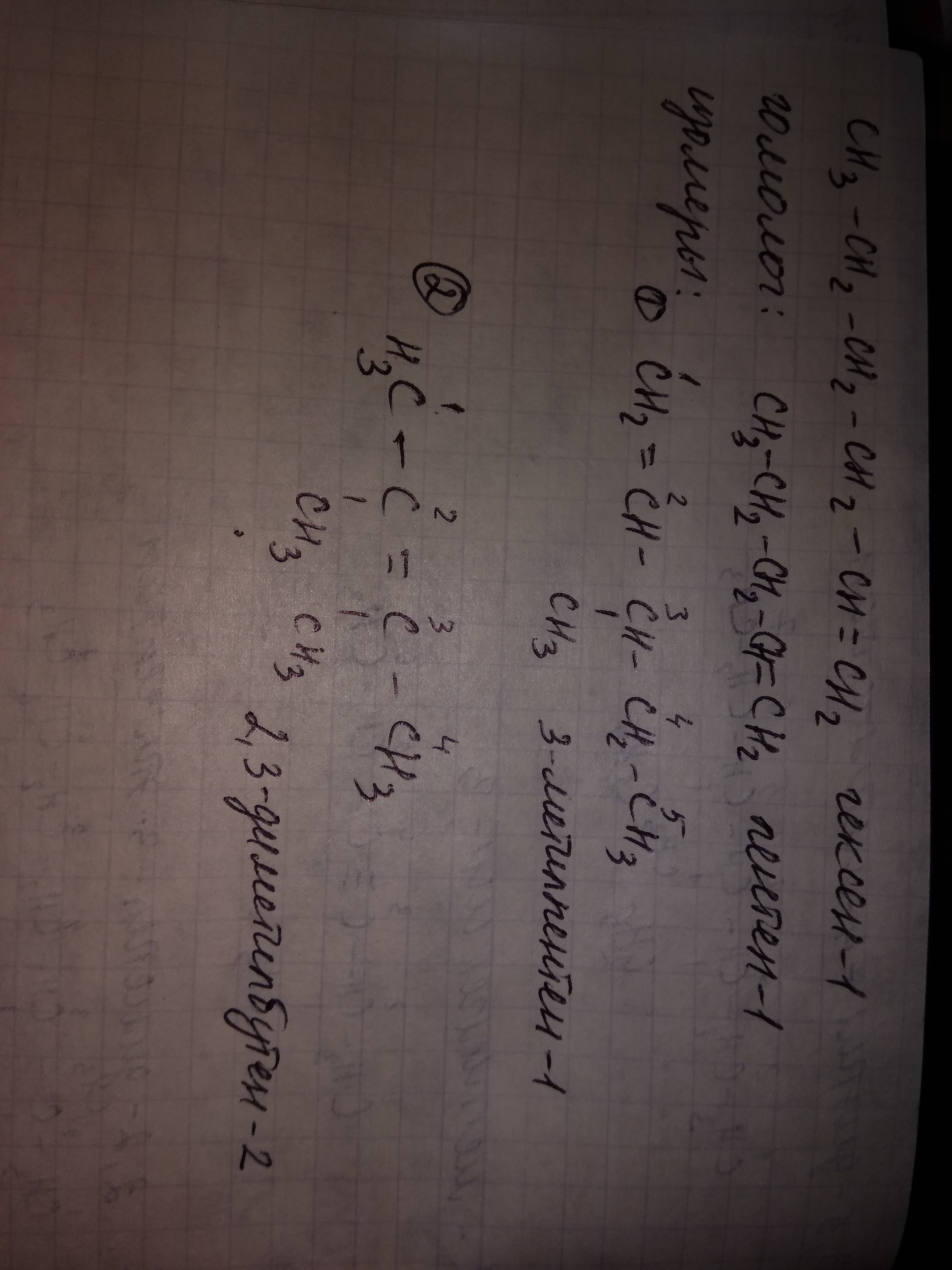Помогите пожалуйста! Для вещества формула которого ch3-ch2-ch2-ch2-ch=ch2 составьте структурные формулы одного гомолога и 2 изомеров. Назовите эти вещества.