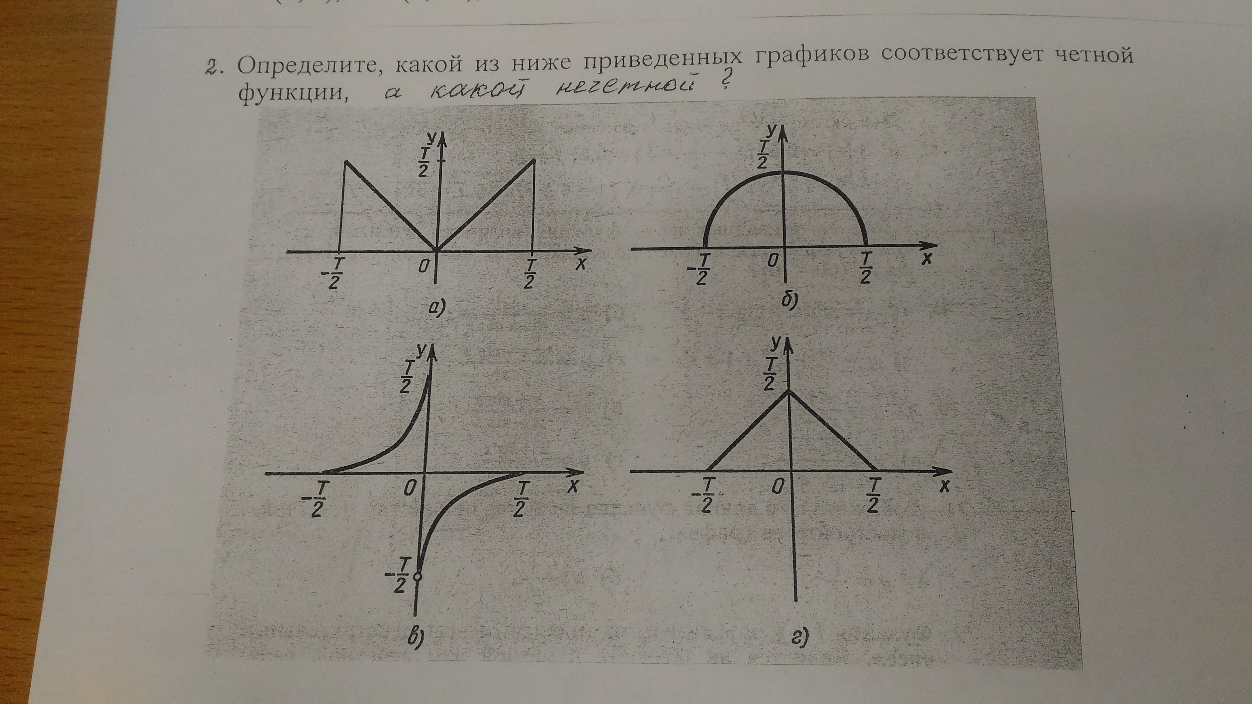 Определите, какой из ниже приведенных графиков соответствует четной функции, а какой нечетной?