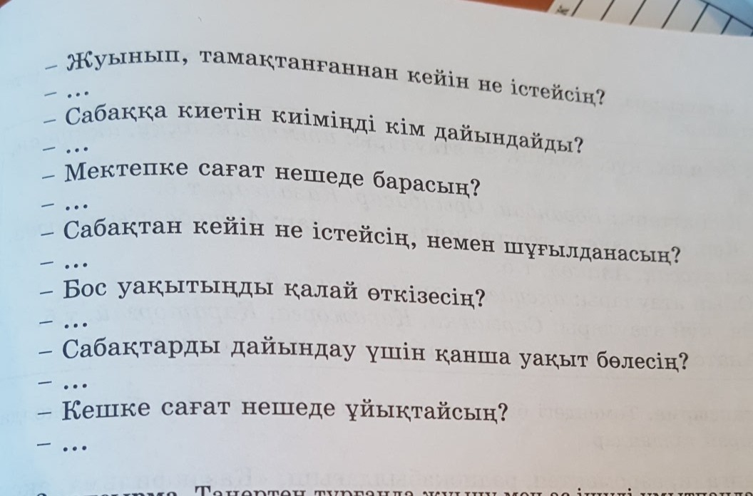 - мектепке сағат ... (тут время напишешь, во сколько в школу идешь) барамын