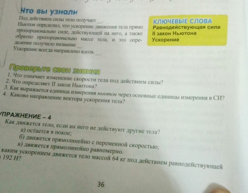 Проверьте свои знания )есть в книге 2)тоже в книге есть 3)кг 4)влево помоемуупр 4 остается в покое