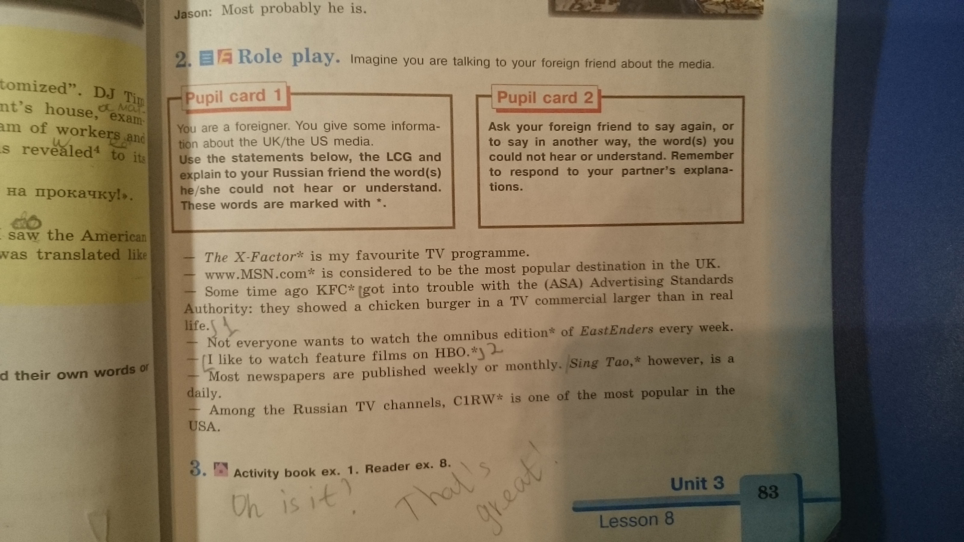 Hi Bob! Hi John! How are you? OK. And you have? also good. did you do dz? Yes and you? So do I. bye Bye
