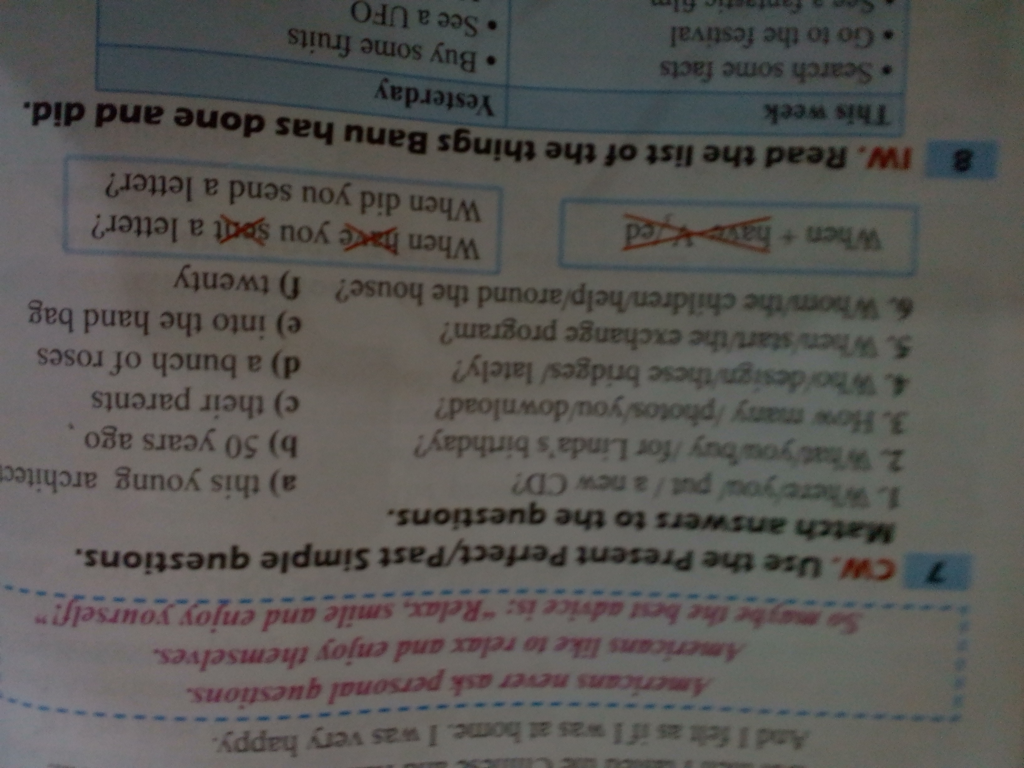 2)What did you buy for Linda's birthday?- I bought a bunch of flowers.