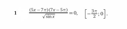 frac{(5x-7pi )(7x-5pi )}{ sqrt{sinx} } =0; ,; ; ODZ:; sinx textgreater  0; ,; ; 2pi n textless  x textless  pi +2pi n\\(5x-7pi )(7x-5pi )=0\\5x-7pi =0; ; to ; ; x=frac{7pi}{5} textgreater  pi ,; 3; chetvert; ,; ; ne; podxodit\\7x-5pi =0; ; to ; ; x=frac{5pi}{7} textless  pi \\xin [-frac{3pi}{2},0]:; ; x=frac{5pi}{7}= frac{5pi }{7}-2pi  =- frac{9pi }7}\\Otvet:; ; x=-frac{9pi}{7}; .
