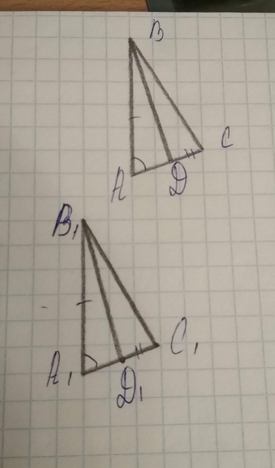 Доказать: Треугольник ВДС = треугольнику В1Д1С1