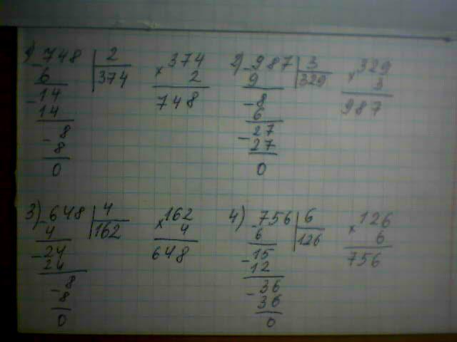 Выполни деление и проверку 748:2,987:3,648:4,756:6. Я просто сегодня заболел и не освоел тему помогите только побыстрей а то сейчас мама приедет и будет ругать что не сделал домашнее задание :-(